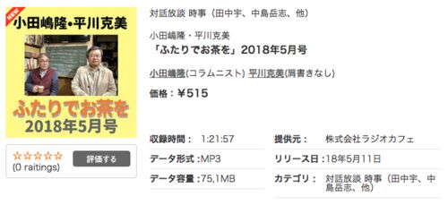 http://www.radiodays.jp/item_set/show/835小田嶋隆・平川克美 「ふたりでお茶を」2016年8月号(全巻セット) 平川克美(ラジオデイズ・プロデューサー) 小田嶋隆(コラムニスト) 天皇陛下の「生前退位」とSMAP解散の意外な共通点!都知事選の結果から話はス…